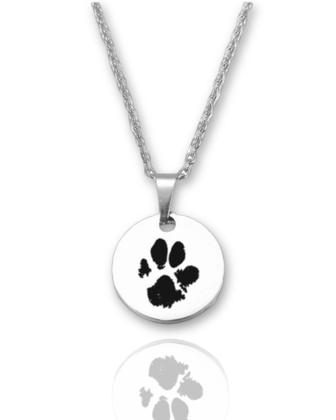 Questa collana è personalizzata con la vera impronta della zampa del tuo amico a quattro zampe, incisa con precisione al laser su un elegante ciondolo in acciaio inossidabile.